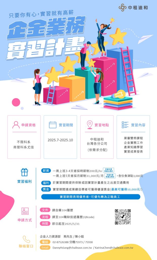 【實習】中租迪和2025企金業務實習計畫(申請至5/31止)