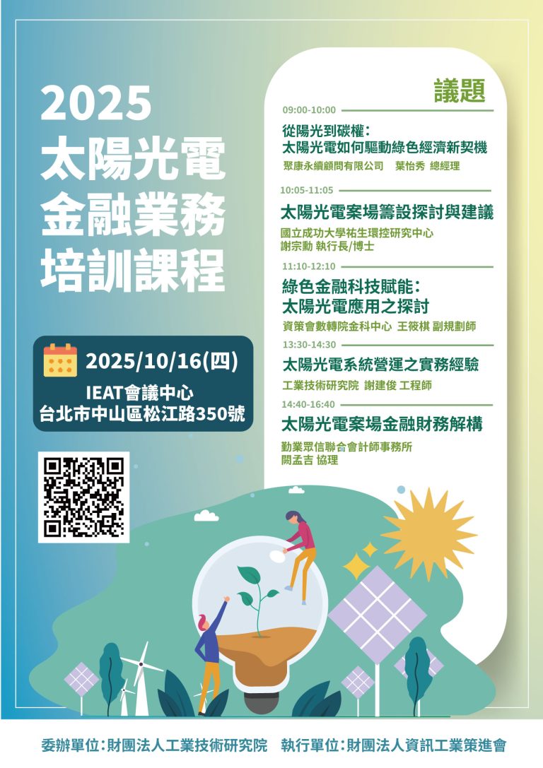 財團法人資訊工業策進會辦理「2025太陽光電金融業務培訓課程」活動資訊