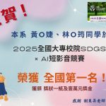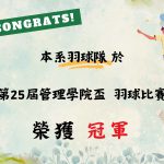 狂賀!本系大一於113學年度校慶運動會表現優異 團體總錦標 榮獲 殿軍 趣味競賽-十拿九穩 榮獲 亞軍 本系與有榮焉!! 相關文章 狂賀!本系同學榮獲2025全國大專校院SDGSxAI短影音競賽-全國第一名! 2025 年 12 月 2 日 狂賀!本系羽球隊於第25屆管理學院盃羽球比賽榮獲冠軍! 2025 年 12 月 1 日 狂賀!本系女籃隊與公行系女籃隊於114學年度新生盃女子籃球賽活動表現優異 2025 年 11 月 10 日