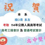 恭賀!本系葉家維老師榮獲「113學年度優良導師」,本系與有榮焉! 相關文章 祝賀!本系系友114年公務人員高普考榜單 2025 年 9 月 22 日 恭賀!本系教師榮獲113學年度第2學期期末教學評量科目得分前10% 2025 年 9 月 10 日 恭賀!本系教師榮獲國科會114年度研究計畫補助 2025 年 7 月 14 日